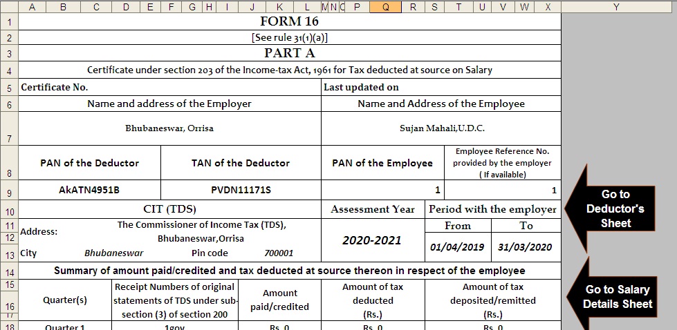 Form 16 In Excel Format For Ay 2020 21 With Automatic Caluculations