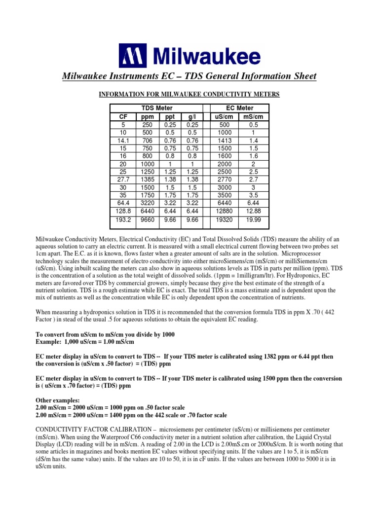 Tds To Conductivity Formula